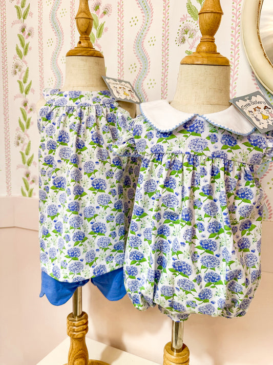 Three Sisters • girls hydrangea short set