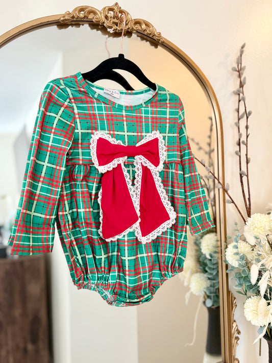 Christmas 2025 • girls plaid & lace bow bubble