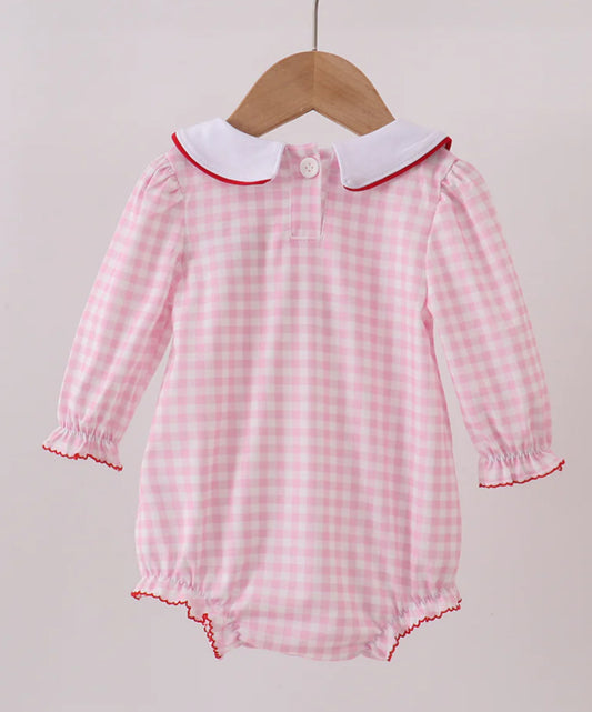 HD xmas 25• girls pink gingham Santa embroidered bubble