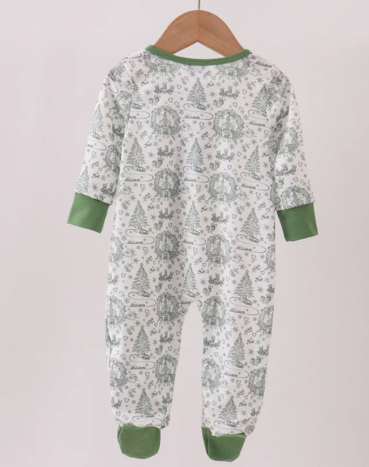 HD Xmas 25 • boys green tree print romper