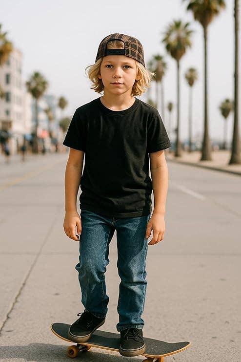 Flat Brim Trucker Hat - Brown Plaid w/ Faux Leather Brim